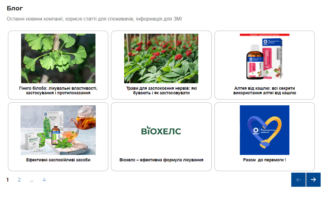 Крім цього, присутній невеликий блог з якісними статтями на фармацевтичну тематику.