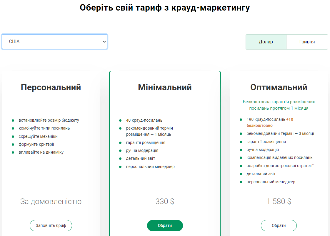 Параметри відбору майданчиків для розміщення крауд-маркетингових посилань: