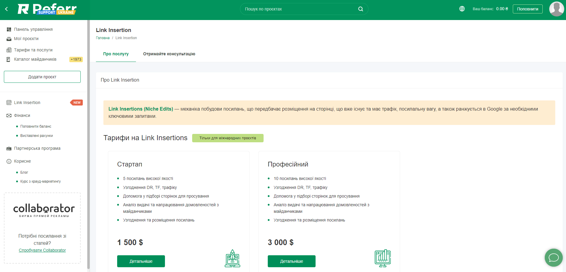 Якщо і ви хочете спробувати Link Insertion для свого міжнародного проєкту — напишіть нам в чат на сайті або у телеграм @referrservice. Ми детальніше розкажемо про ці ексклюзивні лінки та опишемо механіку роботи💪