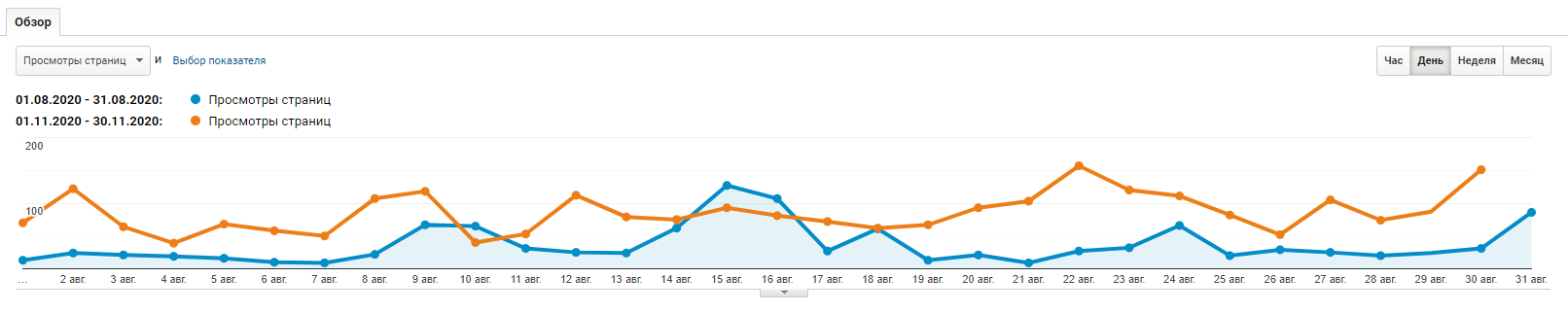 Зростання органічного трафіку з 480 відвідувачів на місяць до 1800: порівняння серпень 2020 та листопад 2020 (дані Google Analytics, Google Search Console)