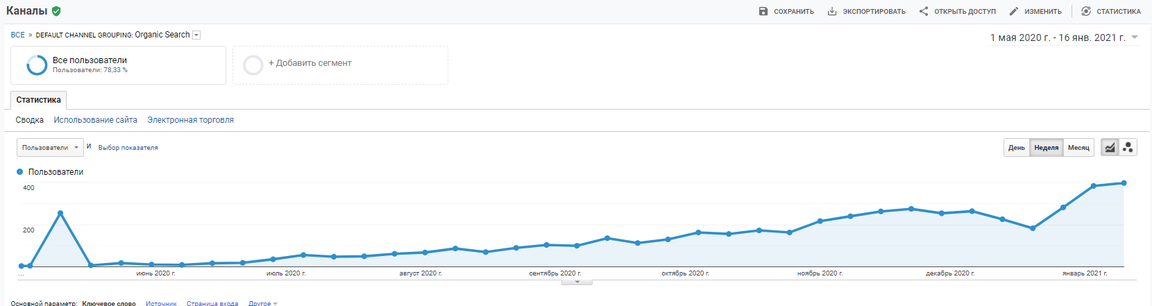 Органічний трафік сайту перед стартом: 480 відвідувачів на місяць.