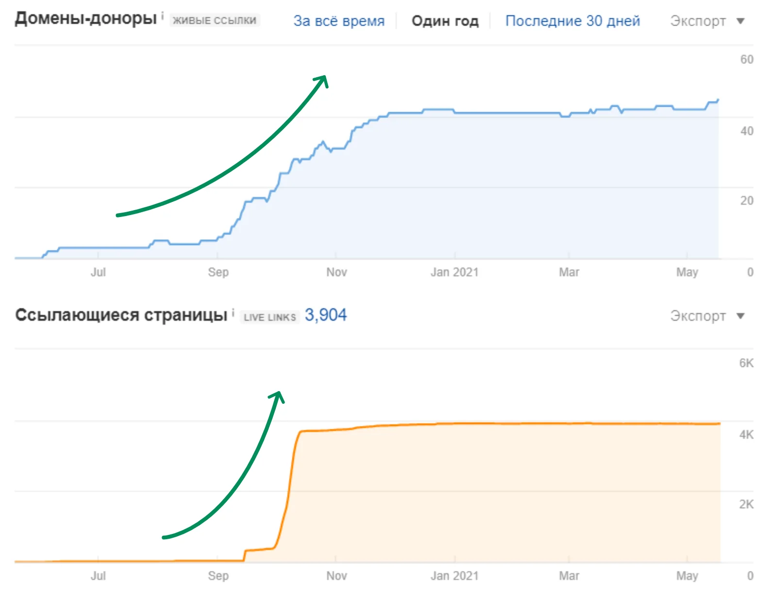 Незалежно від тематики сайту, щоб обійти конкурентів та потрапити до ТОПу пошукових систем, необхідно забезпечити посилальному профілю планомірне зростання. Не варто зупиняти роботу з лінкбілдингом навіть у низькі сезони. Стагнація профілю у рази гірша за новий.