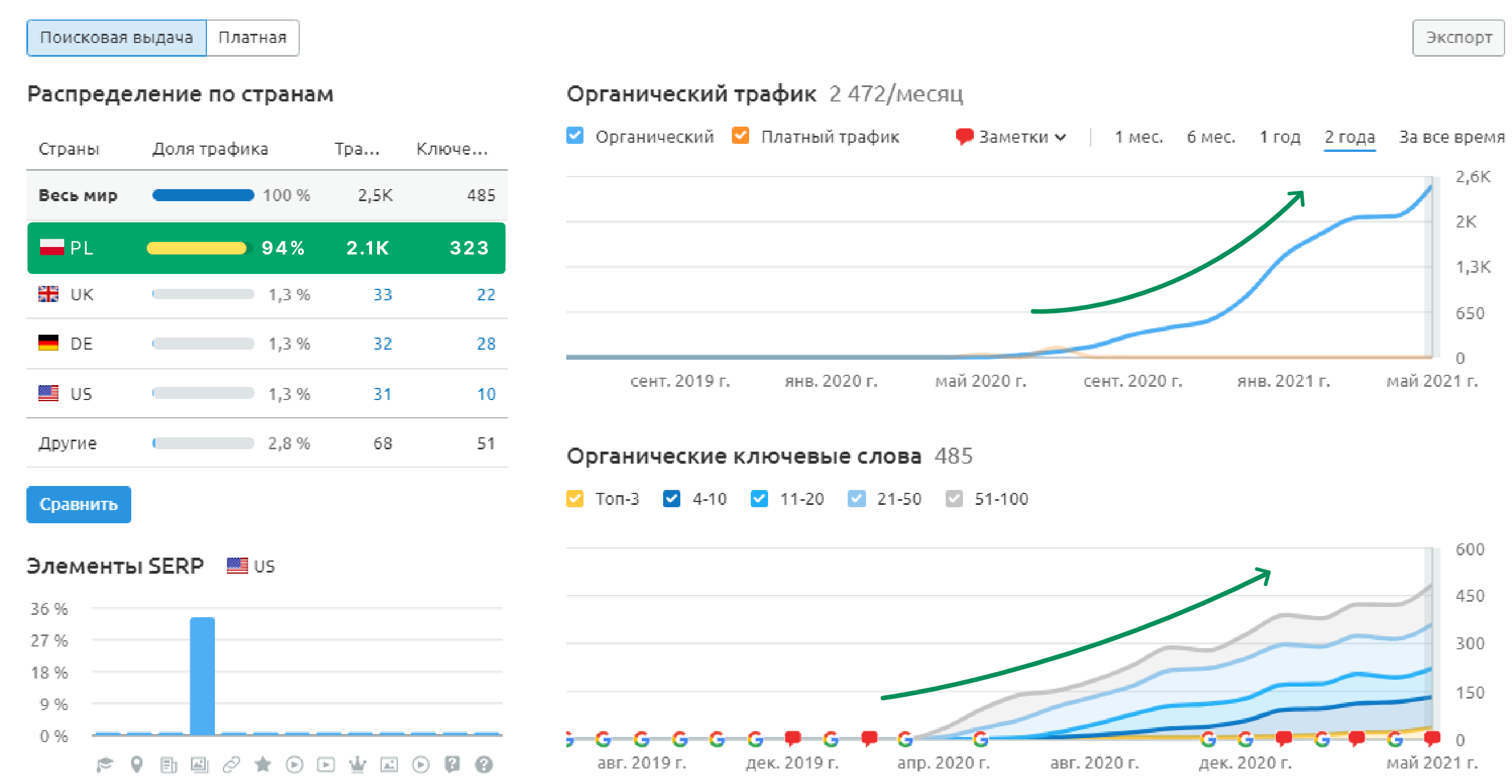 Наш клієнт всього за 3 місяці грамотного підходу до лінкбілдингу під польський ринок зміг досягти зростання органічного трафіку у 3.7 разів та збільшення загальної кількості продажів у 9.5 разів.