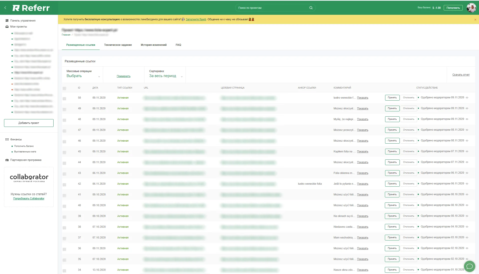 Вся робота зі схвалення/доопрацювання розміщених посилань проводилася в особистому кабінеті.