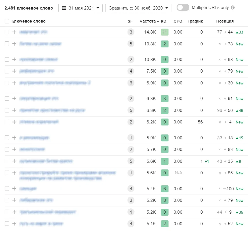 Спостерігаємо суттєве зростання позицій сайту та додавання нових ключових запитів у профіль