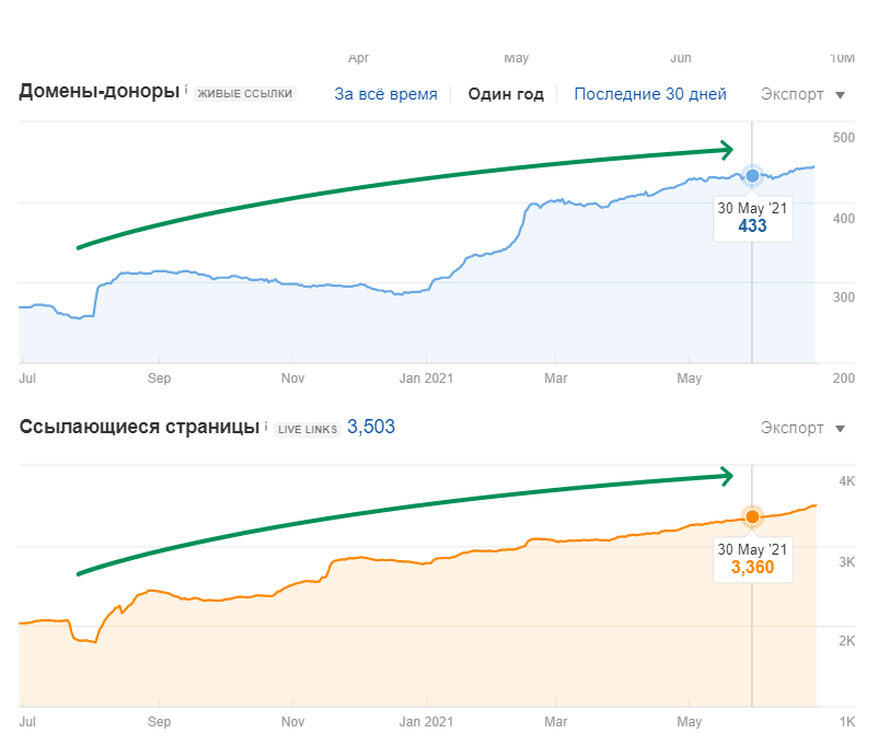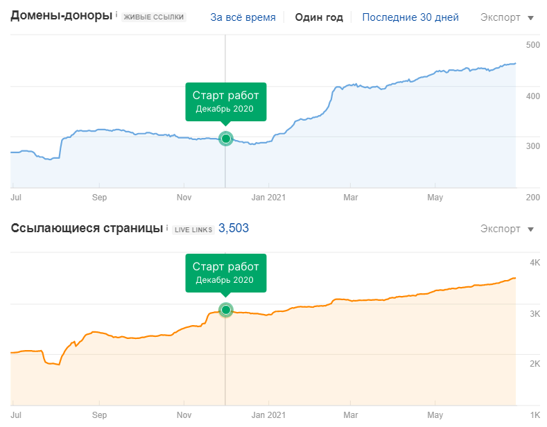 Як бачимо на графіках — ми зробили свій внесок у створення планомірного зростання динаміки посилального профілю та збільшення присутності проєкту у видачі за пошуковими запитами.