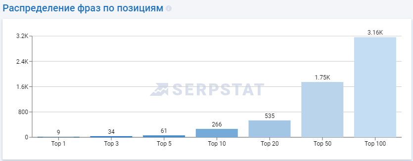 Розподіл ключових фраз щодо позицій у пошуку Google