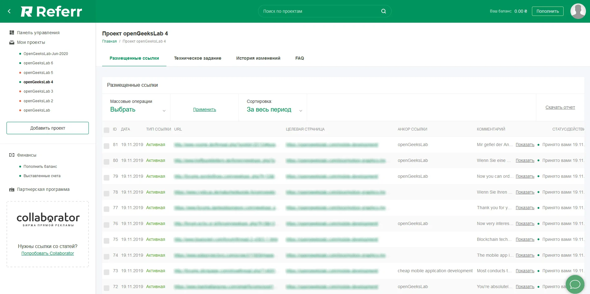 Вся робота зі схвалення/доопрацювання розміщених посилань велася в особистому кабінеті.