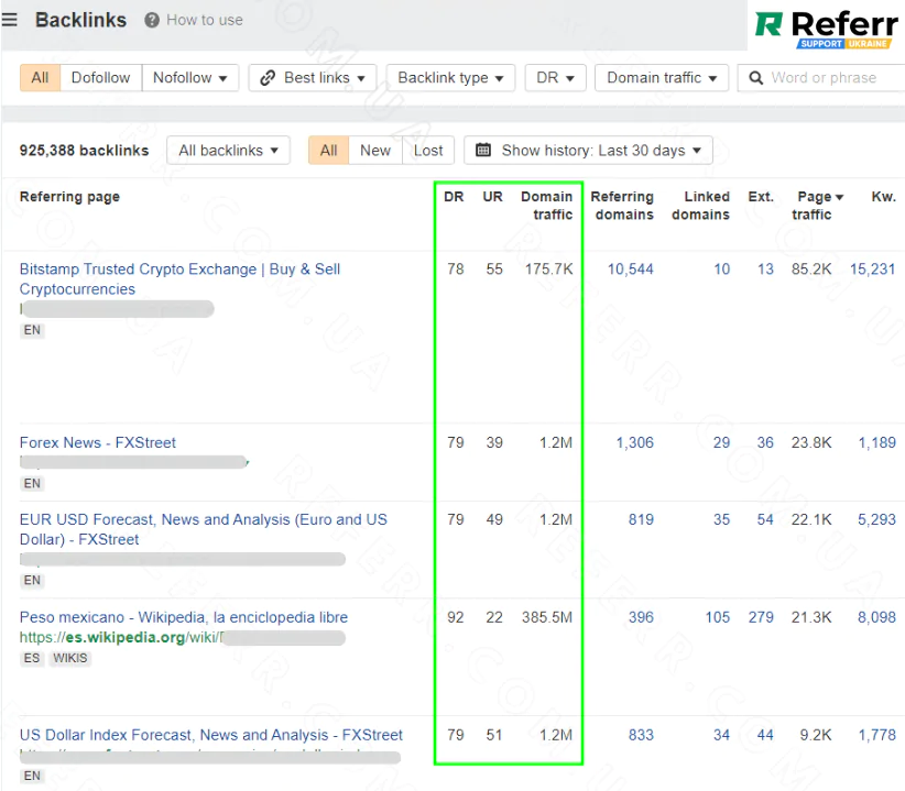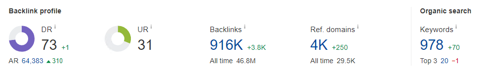 - Большой сайт. Сайт имеет сильный ссылочный профиль, высокий DR и 441К+ пользователей в месяц.