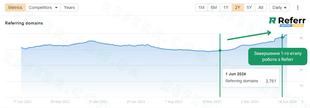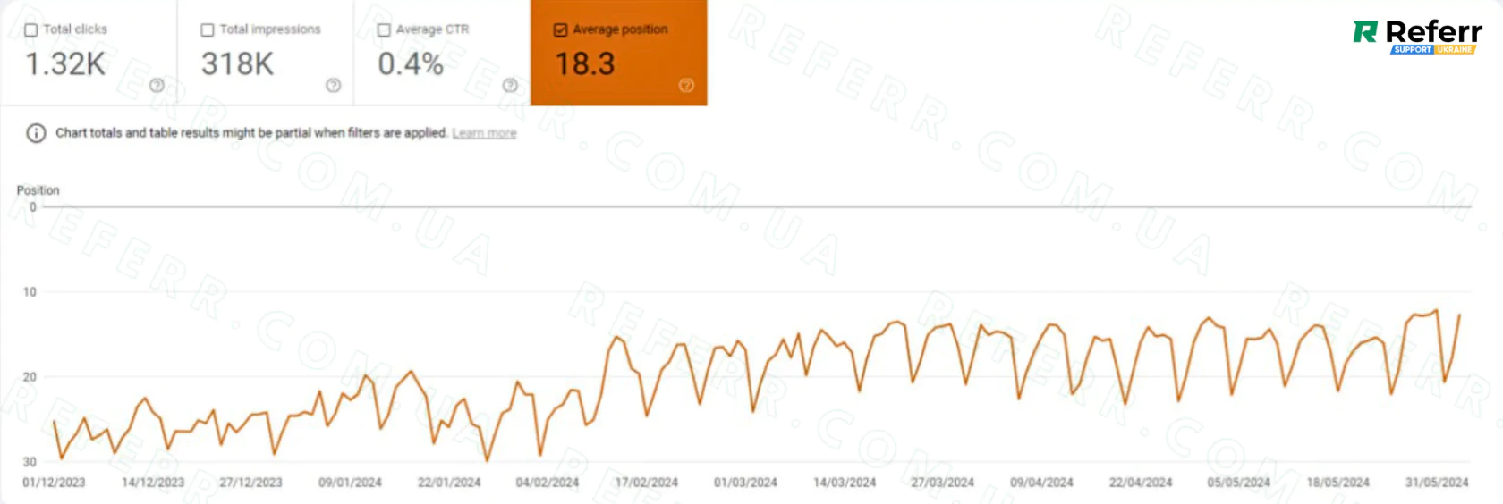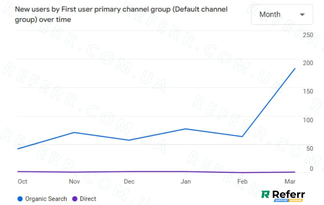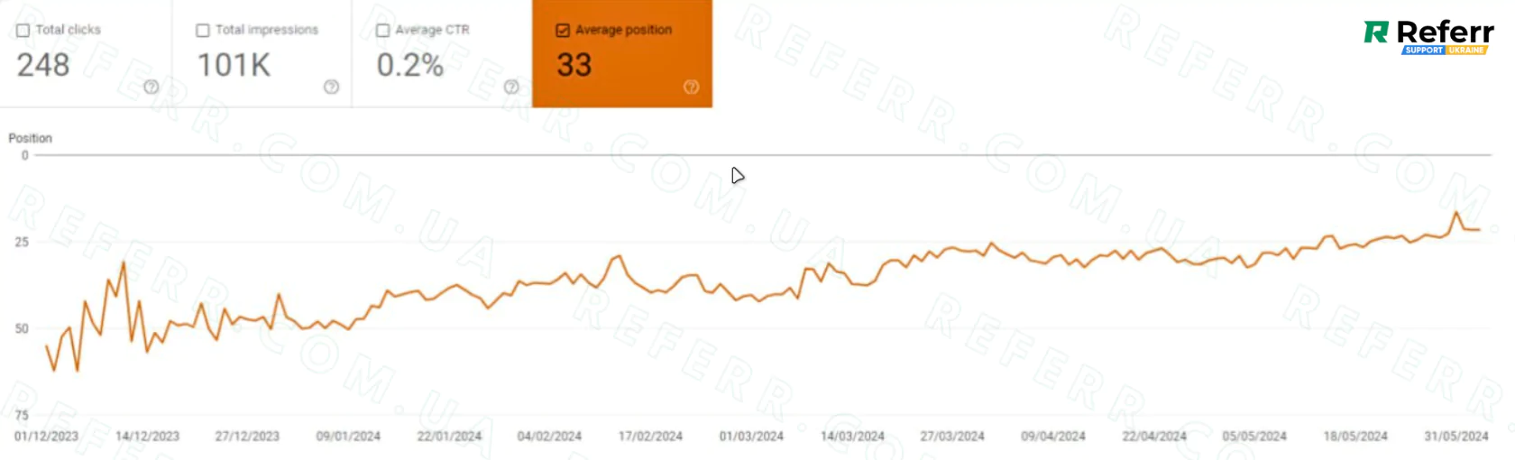 Задачи, которые поставили перед Referr: продвижение целевых страниц и поднятие позиций сайта в выдаче Google по ключевым запросам.