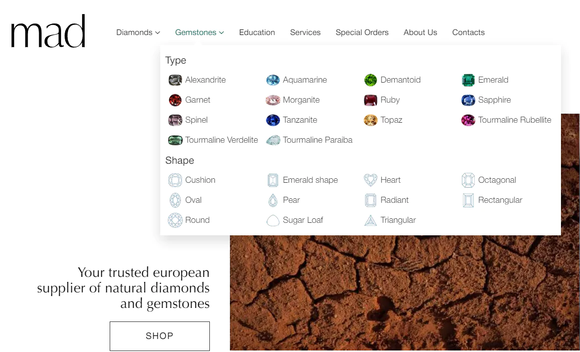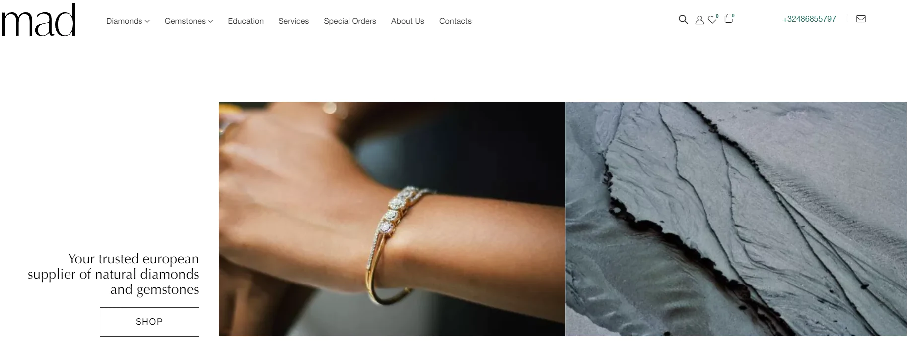 Проект клиента: Magnificent Antwerp Diamonds (MAD) — компания по торговле бриллиантами и драгоценными камнями в Антверпене (Бельгия). Работает с 2003 года.