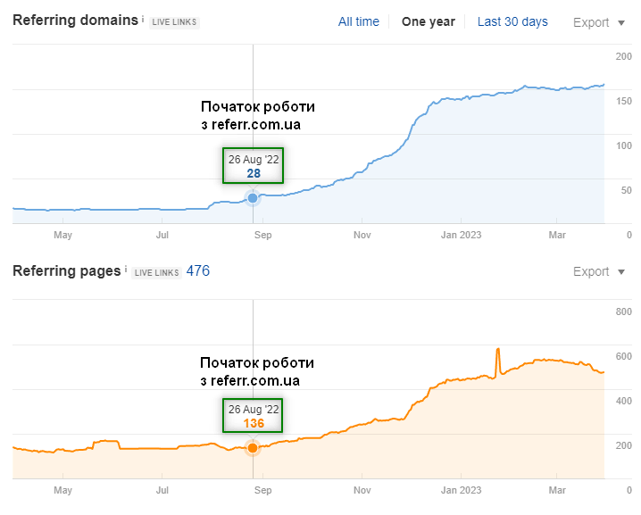 За полгода совместной работы SEO-специалиста и команды Referr удалось добиться следующих результатов: