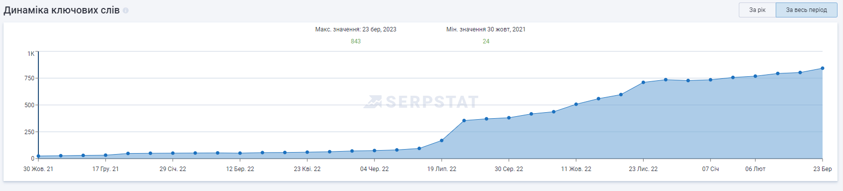 - Количество ключевых запросов у площадки от 3К, согласно Ahrefs.