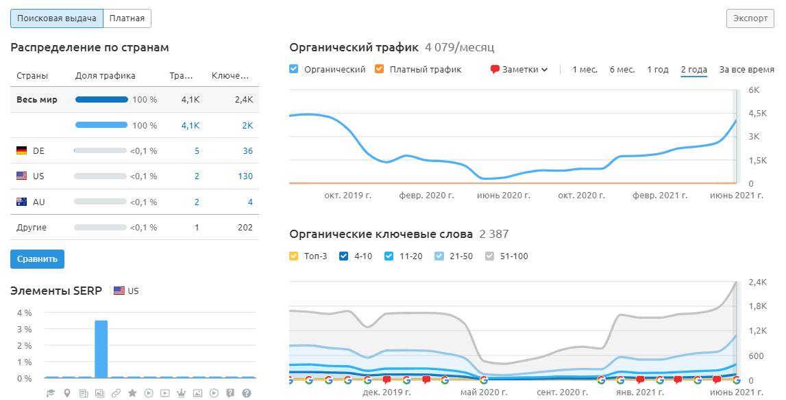 Динамика видимости сайта в поисковых системах, трафика и ключевых слов.