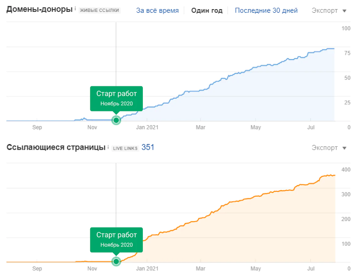 - Строгие параметры отбора доноров. Для некоторых методов линкбилдинга у клиента были четкие требования по качеству площадок для размещения ссылок.