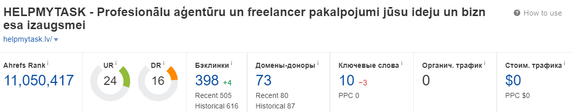 - Проанализировали ссылочный профиль HELPMYTASK и общие показатели сайта;