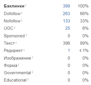 Ссылочный профиль сайта: на момент старта работ насчитывался один уникальный ссылающийся домен и две обратные ссылки.