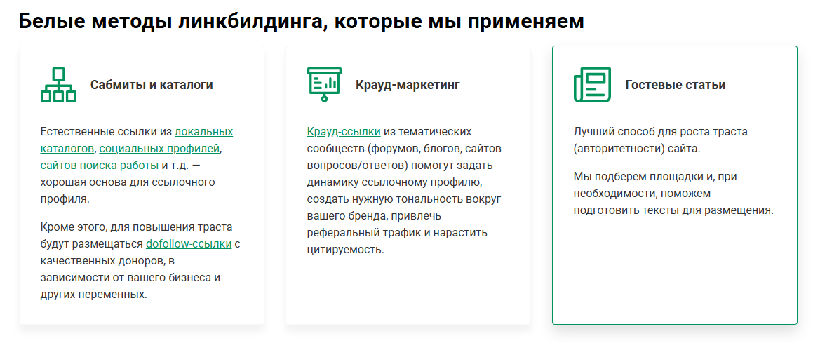 Методы ссылочного продвижения, которые использовали для этого IT-проекта