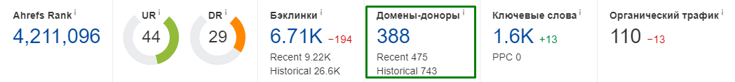 Рост уникальных ссылающихся доменов + задана положительная динамика (данные Ahrefs)