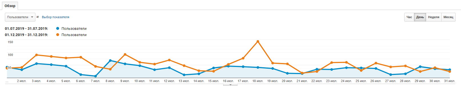 Рост трафика с 400 посетителей в месяц до 1900: сравнение июль 2019 и декабрь 2019 (данные Google Analytics, Google Search Console)