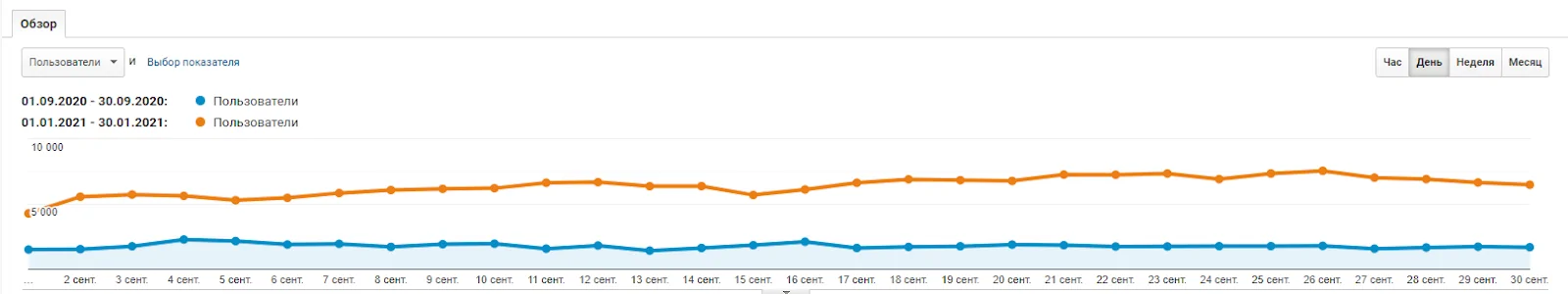 Рост поискового трафика: сравнение сентябрь 2020 и январь 2021