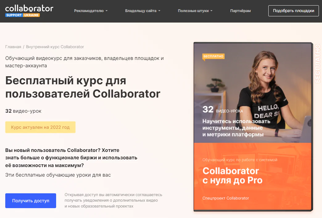 Вы новый пользователь Collaborator? Хотите знать больше о функционале биржи и использовать её возможности на максимум? Рекомендуем обратить внимание на детальный обучающий курс «Collaborator с нуля до pro». 32 урока для начинающих и продвинутых пользователей.